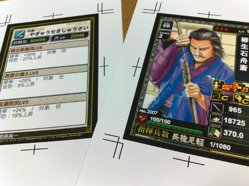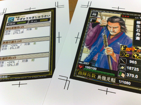 スクリーンショットを使ってる上、画像サイズを変更しているため、印刷すると文字や線の縁がぼんやりした感じになります。Illustratorなどを使ってパーツを1つずつ作り直し、似たフォントで文字を載せればキレイなカードになるのでしょうが、その手間を考えて……やめました(爆)